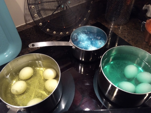 It’s a Run the Jewels rap, kind of, it’s been a long week. I started to boil the eggs and thought it would be fun to add food coloring because it’s almost Easter.