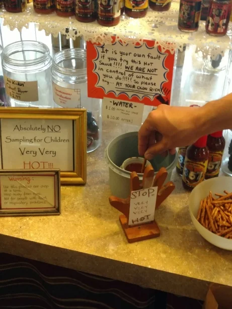 For between the two locations is a secret lair, a basement shop, sunk into the ground. A shop named A Matter of Taste, built with a singular purpose: Human suffering. Okay, that’s not true. It’s a food shop, focused on dips and sauces. Mustards, hot sauces, honey crèmes, so on and so forth. However, every time we visit, JJ and I indulge in the same stupid ritual: ignoring all warnings, verbal and physical, we taste their monster hot sauce.