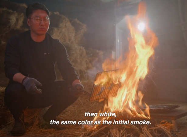 Baek takes us to a restaurant he used to eat at, and how, in the 80’s, restaurants relied on frozen pork belly. The chef explains her preferred thickness for frozen pork belly, Baek eats his order of pork ssam (a kind of lettuce wrap you build yourself from the grilled meat, vegetables, and seasonings) and explains the nuances of the flavor. From there, they discuss how the grills have changed over time, which leads into the next segment, about grill creation: how over the past 40 years, there have been numerous waves of different shapes and styles of grills to be “in”. For a while, it’s all rounded “cauldron lid” grills, then it’s iron grills designed to look like a worn river stone. There are literal thousands of patented grill designs in the country, including this beauty.