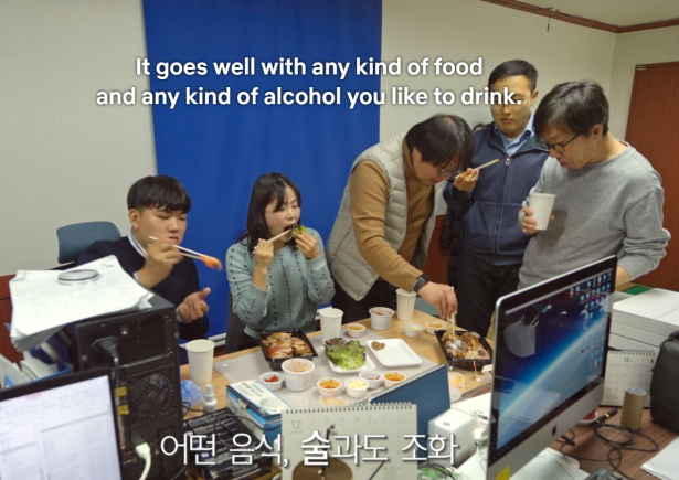 It also helps people contextualize what might feel like a jarring sense of “otherness” some viewers may experience: while available on American Netflix, this show is not made for Americans. It is not dubbed, and does not subtitle everything: you’ll get all the things people say, and the banner summations that splash onto the screen from time to time (more on that in a bit) (editor’s note: We actually never get back to it. But to summarize: in case you’re unaware of it, Asian television, especially educational TV and documentaries, has a habit of recapping phrases or ideas from the video in bold text on the screen. I’m pretty sure this is a market factor: like, I think a LOT of Asian TVs are left running in places of business, with the sound low or off, maybe with subtitles on, for people to kind of glance at when they have a minute. So you can look up, and the screen says “A wild taste” or “Pork Fat the engine of Korean industrialization!” Or, as it does in the second to last picture of this post “Good with any food or drink”. So you can get the gist of the point being made, without having to turn up the volume or stop taking an order or whatever. ), but, for instance, here’s the introduction we get to the host of the show.