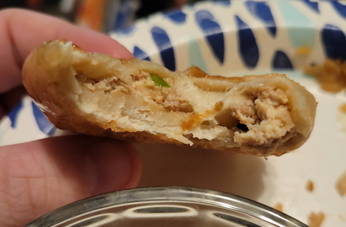 Have I had dumplings this poorly made from Chinese restaurants? I would say yeah, these are pretty on-par with, like, the cheap dumplings the less-popular Chinese place next to the middle school in my home-town makes. Though theirs are weird in a different way: With theirs, they’ve been a little over-steamed, and the internal meat a little overworked, so it’s a kind of bouncy meat texture in a disintegrating wrapper. Here, we clearly didn’t make the wrappers thin enough, so it’s a slightly overly doughy layer to bite through. You get like, the initial crunch of the fried exterior…and then have to KEEP BITING to push through the rest of the wrapper.  The meat and tofu mixture inside is fine. The Five Spice is a little weird, and I honestly think I should have doubled down and tossed in the brown sugar, because that would have unified the identity here a little better. It’s by no means the worst thing I’ve ever made. Hell, since making them, I picked up a box of Costco Pho Soup Dumpllings, and one of them got trapped in a cold spot while I was cooking them in the microwave so it was only like, thawed out, but not cooked enough where the soup had re-melted, and that was worse than these. It’s clear I’m more of a…shit, I have already forgotten the sister’s name. Rou? DId I write it down earlier? Nope. Anyhow, clearly I’m more of a loud mouth than a fine chef. But if you wanna try these and one up me, here’s a recipe, and I wish you the best of luck.