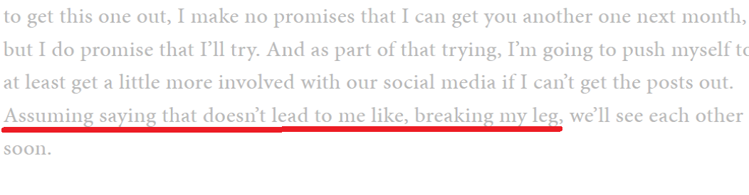 So, as noted, I started the month of July writing about how, after months of dental work, and a brief bout with a kidney stone, I was going to try to do some more social media stuff, and post more often. I even, in a twist I didn’t discover until just now, and have started laughing like a maniac at, ended the post like this: