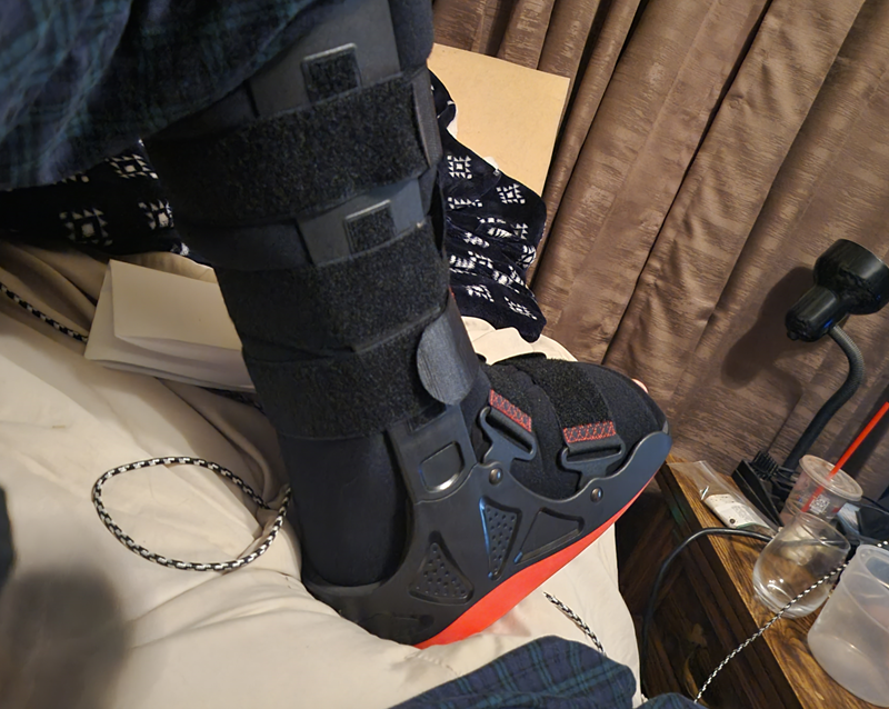 At first, we thought I had just twisted or sprained my ankle, as I could walk on it if I tried, it just sucked to do so, so after a couple hours of hobbling through some sight-seeing we’d planned for the day, I mostly spent the rest of the weekend sitting on the edge of the various gatherings and hang outs, icing my ankle 2 or 3 times a day.. Then I went home, spent 2 days trying to get into urgent care before finally getting into the emergency room at around 10 PM for a doctor to say “yeah, that’s broken, buddy.” Before handing me a boot and sending me on my way.