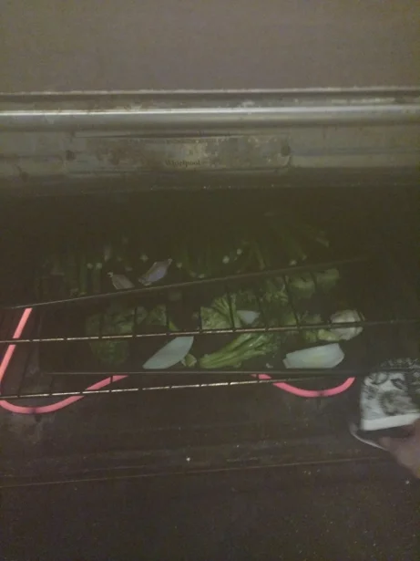 So, I considered the issue, and read through a couple recipes for both asparagus soup and broccoli soup, and decided what we should do is roast them, because, hey, I’m as big a fan of asparagus as the next guy, meaning I only eat it when it comes to me covered in cheese sauce or roasted. Roast some garlic and onions with those bad boys, we got some solid ingredients for a soup base. One problem: roasting these is gonna take like, 30 minutes, and setting up all this shit took till like, 8. So either we start now, I make the whole soup alone, working until like 10, or we roast now, cook tomorrow. And these quack doctors keep scheduling things at the ungodly hour of 9 AM, so I’ve had to get up at 7 AM, an hour I assume is forbidden by the Geneva conventions. So we decide to roast now, cook later.