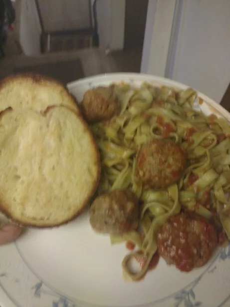 Once they balls are covered in brown (eww), toss in the garlic, and let it sizzle about 30 seconds. Then dump the cans of tomatoes on top and turn the heat to medium low. Around this time, your water should be boiling. In goes the salt, in goes the pasta, and now you play the waiting game. Make some garlic bread or salad if you want. You got about 6 minutes of relative uselessness.